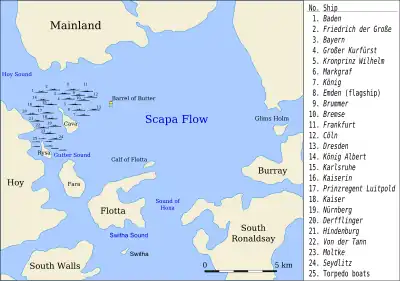 Martin's Haven is in the Skomer Marine Nature Reserve and is popular for scuba diving. - Scapa Flow is a dive site in a body of water in the Orkney Islands, Scotland, United Kingdom, sheltered by the islands of Mainland, Graemsay, Burray, South Ronaldsay and Hoy.