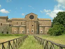 - Church of Santa Maria in Falleri (Chiesa di Santa Maria in Falleri), ☏ +39 0761 569001, cultura@comune.fabricadiroma.vt.it. April to October: Sa Su 09:00-13:00; other times of year by appointment from the city's Office for Culture. In the fourth decade of the twelfth century, Cistercians from the monastery of S. Sulpice-en-Bugey founded the Abbey of Falleri in Falerii Novi. The building still reflects the Cistercian architecture with its tuff with regular inserts of granite and decorations of marble. Entering the church you notice immediately austerity and simplicity of the work. The sanctuary has three naves, with the central and highest double the height of the sides: all are singly illuminated. The nave consists of four spans of quadrangular shape, which are doubled on the sides. The church has a transept ending at the east with a choir made up of five apses.