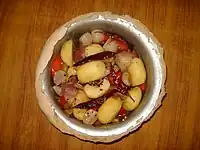 - Mtsvadi kezse (წვადი კეცზე) - mtsvadi made in a pot (კეცე, Keze) on a stove or open fire.