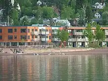 There is an airport a few miles out of town, up on the ridges overlooking the lake, but no scheduled service.