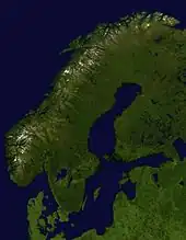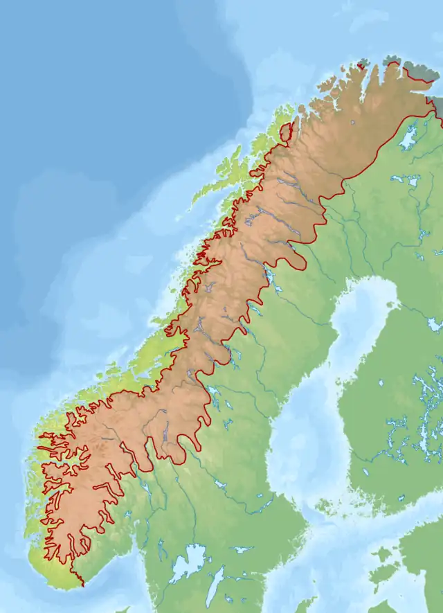 The Scandinavian mountains can roughly be subdivided as on the map.