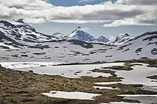 Spring is particularly late in the high mountains of Norway, even in June some areas are accessible on skis only. This is true in mountains such as Norwegian Jotunheimen and Hardangervidda, where snow may persist through June and large patches of snow may remain through late summer. Even in Finland there is a Midsummer skiing competition (at Kilpisjärvi). Norwegians do hike by foot carrying their skis to areas where they can continue by ski.