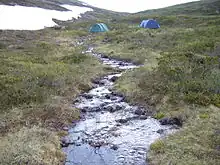 Spring is a much loved season by many locals. Days are light, the sun is strong and nature is awakening. Wilderness hikes can be demanding, with deep snow here and bare ground there, and much water, but many destinations are unproblematic. In the north and in high mountains June is still a time of melting snow and high waters in the streams and in the high mountains snow may persist into July or later. Rotten snow and high waters make hiking difficult in the affected areas in what is early summer elsewhere. Later the remaining snow is often compact, hard enough to walk on.