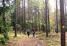 In addition to hiking trails at separate destinations there are some long distance hiking trails and hiking trail networks connecting nearby protected areas and recreational areas. They usually follow minor roads some or most of the distance, going through interesting natural surroundings wherever possible and sometimes passing by villages and tourist attractions, where you might be able to replenish. Lengths vary from suitable for a one day hike to the extreme European long distance paths. The longest routes are usually created by combining trails of different trail networks, which increases the risk of some parts not being well signed or maintained. There may even be parts missing. As hiking on other persons' land is perfectly allowed, you can make your own adjustments to the routes, but this may sometimes mean walking by a road or through unnecessarily difficult terrain.