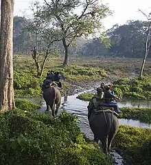 You can see rhino, various types of deer, elephants, bison and peacocks, among other animals.