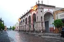 - Behind the Sanctuary of Nuestra Señora de la Soledad is the Jardín Hidalgo, which is in front of the Hinojosa Theater. The theater is in Moorish style with arches, windows and railings in groups of three and five, built between 1876 and 1890, promoted by local politician José María Hinojosa. Its stage is under a sandstone arch and its seats are carved from wood. For most of its history, the lighting was provided by carbide lamps, and a large mirror in the back remains from that time. It is said that the building served as a barracks during the Mexican Revolution. Today it is used for live performances but in the past it was a movie theatre, a hall for social events, a library and a public school. On the side of the building, there is a Community Museum with items such as carpentry tools, archeological pieces, sewing machines and more from the area's past.