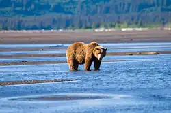 The park contains a huge number of Alaskan brown bears, which grow to enormous size after feeding on the summer salmon runs.