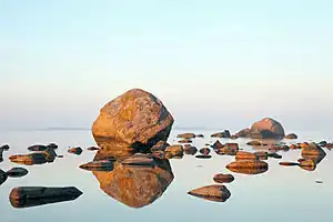- 🌍 Boulders, Laane tee 4. Boulders in Lahemaa are everywhere, but in Käsmu they are especially numerous and huge. Each large boulder has its own name, indicated on the park's maps placed here and there. One of the largest stones can be seen from the left side on the road to Käsmu, about 1 km before the village. Another interesting place is the northern tip of the peninsula, where the stones form a kind of bridge to the island about 500 m from the Shore of the Devils. You can get there by going to the very end of the road (there is a small parking lot) and further along the path through the forest. Here you will find the largest boulder, Kiasma, which is more than twenty meters in diameter.