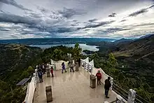 Tele observation tower terrace overlooking western Lake Toba & Samosir island. - 🌍 Waterfront Pangururan, Pangururan. The lakeside Pangururan is converted into a park & walkway spanning from Tano Panggul bridge until Pangururan's market. Every weekend at 8 PM, there's fountain show that last about 20-30 minutes. Come early to get best front view as it's packed with lots of people. Free. (updated Jan 2024)
