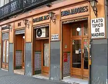 - 🌍 Freiduría de Gallinejas Embajadores, C/ Embajadores, 84 (near Glorieta Embajadores, Metro lines L3 and L5), ☏ +34 915 175 933. M-Sa 11:00-23:00, Su 12:00-22:00. Another classic tapas bar in Madrid, not for conservative stomachs. Their most popular tapas are two of the most typical and traditional dishes in Madrid: gallinejas and entresijos. A treat for adventurous palates and lamb-lovers. Raciónes €3-9. (updated Feb 2017)