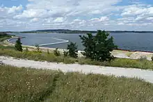 - 🌍 Speicherbecken Borna. The former open pit mine was converted into a reservoir after flooding by installing a dam. 265 hectares (650 acres) surface area.