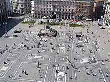 - π Piazza del Duomo (Metro Duomo). The grandest square in the city, the Piazza del Duomo is the cultural and social heart of Milan, and contains several of its most famous sights. There's the majestic cathedral and classy Galleria, plus the 18th C Palazzo Reale and several big, venerable buildings. The square is centred around the statue of King Victor Emmanuel II at Solferino β his horse is skidding to a halt as if it's just clocked the Austrian bayonets. The square is grandiloquent yet softened by its cafΓ©s, restaurants and shops, pigeons, and passers-by. Exchange kiosks here offer decent rates, better than those in the VE arcade. (updated Jun 2021)