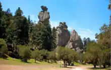 - 🌍 Peñas Cargadas (Loaded Rocks), Carr. Tezoantla al Guajolote km 3.3 (drive past the Panteon Ingles on the road to Tezoantla, then 3.5 km further). Sa-Su 08:00 - 18:00. Small, 3 hectare natural area featuring spectacular basalt rock formations set in a forested area amid pine, oak, and fir. Pack a picnic lunch and plan to spend the day hiking, horseback riding, zip lining, mountain biking, camping, or just sitting and marveling at the magnificent towers of precarious looking rocks. (updated Apr 2024)