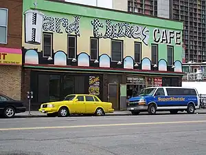 2, 3, 7, 22), β +1 612 874-8702. M-Sa 11AM-1AM, Su 5PM-midnight. Acadia's menu features 28 beers on tap and 40+ bottle brews plus a well-rounded selection of wine and mixed drinks. A full kitchen serves burgers, fries, appetizers, grilled and cold sandwiches, as well as desserts and a full espresso bar. The cabaret spirit of the old adjacent mini-theater space now fills the new cafe, as before with an eclectic mix of all original music, performed Wednesday through Sunday nights, but with no cover charge. (updated Dec 2018) - π Hard Times Cafe, 1821 Riverside Ave (between Cedar and 19th Ave; Light rail: West Bank or Cedar-Riverside;