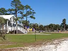 - π Navarre Beach Marine Park (first left after crossing the Navarre Beach Causeway from the mainland). The quieter area of the beach; preferred beach by the locals. Two beach access points (with a third being built for summer 2019) with bathrooms, picnic pavilions, wash-off showers, and a lifeguard post that is manned during the peak season. Should you wish to use the beach pavillons, they can be reserved at the County administration's website. (updated Jan 2023)