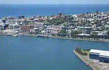 - π The foreshore. Large grassed open spaces on the old goods marshalling yards at the eastern end with playground equipment for children. Bars, cafes and restaurants overlooking the harbour starting from Queens Wharf where live music can be listened to on the outdoor area over the water (Hunter River)but very little grassed areas.