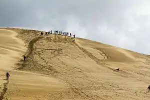 Ninety Mile Beach is a long beach (actually 58 miles or 93 km long) in the Far Far North of New Zealand. Legally a road, it is used for sightseeing trips to Cape Reinga, and the high dunes at Te Paki are used for sandboarding.
