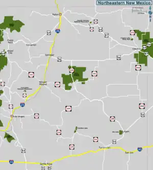 This is one of the "empty" corners of New Mexico, with low population density and comparatively few attractions. Culturally, it has many affinities to the "panhandle" regions of Oklahoma and Texas. Geographically, it forms the western edge of the Great Plains and gradually rises to meet the Sangre de Cristos, with a band of ancient (and, in a few areas, more recent) volcanoes running southwest to northeast toward the state's northeastern corner to provide a little scenic variety.