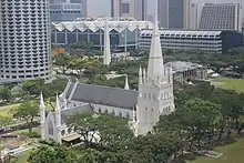 - 🌍 St Andrew's Cathedral, 11 St Andrew's Rd (Riverside). Singapore's Anglican cathedral, completed in 1861 in a mainly neo-Gothic architectural style, and considered by many to be Singapore's most impressive church. Named after the patron saint of Scotland in honour of the Scottish community who had donated funds for building the church.