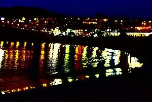 The central area is compact and walkable but the town sprawls 8 km east-west.