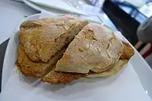 - Bifana is a thinly-sliced pork cutlet sandwich. It can be as simple as just the meat and bread (a papo seco roll), or it can be marinated with dry white wine, lemon juice, paprika, garlic, bay leaf, and vinegar.