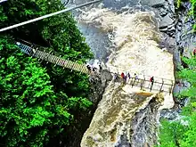 Easy-to-access family footpaths allow you to enter the spectacular canyon carved out by the imposing 74 metres (243 ft) fall which constantly rumbles between the rocky walls of the gorges. Visitors cross 3 suspension bridges… including one 60 metres (200 ft) high! One of the largest giant's pot in Quebec (15 metres (49 ft) in diameter) is visible as well as several waterfalls when you are at the bottom of the Canyon.