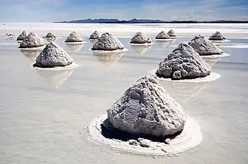 The area is the biggest lithium reserve of earth, containing some 70% of world's lithium in form of salt. Yearly, around 25,000 tonnes of salt are mined here, out of estimated 10 billion tonnes.