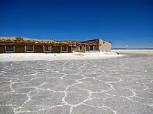 Very little rain happens in the area, but yearly flooding occurs, mostly in January. At that time the whole area changes to a world's highest altitude mirror. After the water evaporates, bee-hive-like polygons cover the area.