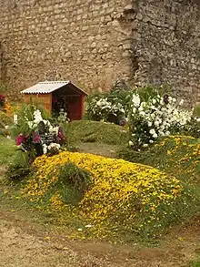 - 馃實 Panteon de San Juan (St John's Cemetery), Cementerio 8, San Sebastian. Picturesque local cemetery that's uniquely Chamula. They plant pine trees at the head of graves rather than using headstones and build a low earthen mound covered by pine needles. Many graves have flower arrangements as well, almost always marigolds. A ruined historic temple occupies the middle of the cemetery. It's a fascinating small cemetery that locals are just dying to get into! (updated Mar 2024)