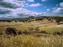 It has an extensive forest mass, favored by a mild climate with high rainfall. It is a cattle region that benefits from its thick sclerophyllous vegetation of holm oaks and cork oaks and which, being severely punished by clearing, is giving way to a dense thicket of heather, mastic, strawberry trees and thyme. There are large pasture properties for pig farming, sheep, and cattle.