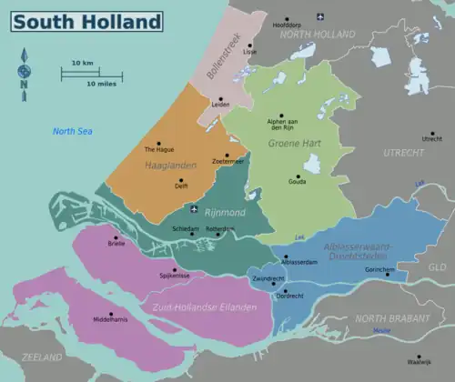 South Holland consists of the southern half of the historic county of Holland. It can roughly be divided into six regions: