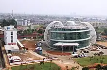 South Tangerang is a collection of several towns, planned communities and Jakarta suburbs, and therefore there is not one clear city centre or transportation hub. The main road into the city is the Jakarta-Serpong toll road, which connects the Jakarta Outer Ring Road in South Jakarta to among others the Bintaro Jaya new town and BSD City. The Jakarta-Tangerang toll road passes just north of South Tangerang, and is a good way to get to the North Serpong district. To get to the southern part of the city, a trunk road leads from the Jakarta Outer Ring Road at Lebak Bulus to the districts of Ciputat and Pamulang (this road is numbered as National Road 12, but there are no signposts indicating this). The Jakarta Outer Ring Road 2 connects the Soekarno-Hatta International Airport passes through Tangerang and crosses the Jakarta-Tangerang toll road before intersecting the Jakarta-Serpong toll road and ending at Pamulang. It is being extended to connect with a segment of the Jakarta Outer Ring Road 2 in Depok.