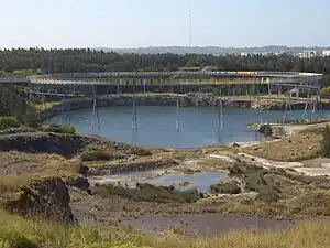 - π Brickpit Ring Walk (The Brickpit). Homebush Bay was an industrial site before it was remodelled as Sydney Olympic Park. The brickpit area was preserved because the post-industrial area was also habitat to several species of rare frogs, including the endangered green and gold bell frog. The brickpit site has a high elevated walkway ringing the site. The engineering is quite impressive. There are interpretive displays as you walk the ring. It is unlikely that you will see any of the tiny frogs all the way down in the water filled pit, but there are binoculars if you wish to try your luck. Free. (updated Feb 2019)