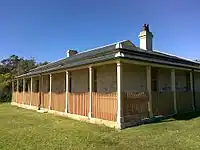 | Georges Head a heritage-listed former military fortification and part of the network of fortifications that were established to protect Sydney Harbour from attack. The buildings in the precinct illustrate the evolution of defence accommodation from the 1871 Barracks (later the Officer's Mess) to 1892 Married Quarters (now Gunshot Alley) to the 1954 separate individual rooms. |