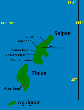 Tinian is one of the Northern Mariana Islands in the Commonwealth of the Northern Mariana Islands, an unincorporated territory of the United States of America. It is just south of Saipan.