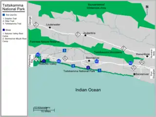- Mouth Trail. 1 km, a linear route. Walk from the park's restaurant to the suspension bridge, the key feature of the Tsitsikamma National Park, a long free-hanging bridge. It can often be seen on photographs, advertising the Tsitsikamma.