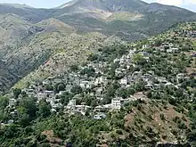 Tzoumerka, also Athamanika, is a mountain massif in the southern Pindos Mountains in Epirus that stretches in a north-south direction. The north-south extent of the Tzoumerka is about 40 km, the east-west extent 15 to 20 km. The highest peak is Kakarditsa at 2429 m. To the west of the Tzoumerka massif, the Arachthos river flows north-south to its confluence with the Ambracian Gulf at Arta, to the east the Acheloos river flows north-south to its confluence with the Ionian Sea. Thus, the Tzoumerka massif represents the watershed between these two great rivers of Greece.