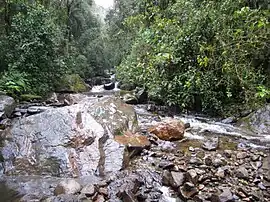 If you do the loop by climbing up to Finca la Montaña and then going from there back down to Cocora you will pass a gate after some 900m with a track that veers off to the right. There is a sign indicating that this goes to the Cascadas. The track starts off fine, but it is clearly not used frequently as it soon becomes difficult to follow; first due to vegetation growing across the track and then also due to the track disappearing and reappearing. Often across grassy knolls it disappears completely and may take some time to find again on the other side. If one loses the track (as I did on several occasions) then one may end up going through dense bush down very steep slopes. Bit of a scramble, and thankfully there is plenty of vegetation to cling on to (though some plants do have sharp spikes). if one loses the way, the track can eventually be regained above the wax-palm forest, and it then leads down to the normal track, and likely does indeed lead to the Cascadas. These can also be reached following the normal route and then going up the valley to the Cascadas. This detour should only be tackled by those that are sure footed and accustomed to making their way in steep terrain without a track underfoot.