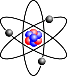 - (nucleus surrounded by electrons): eletrão, núcleo, partícula subatómica, protão