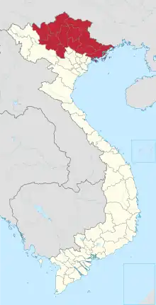 Sino-Vietnamese word from (east) and 北部 (Northern Vietnam).