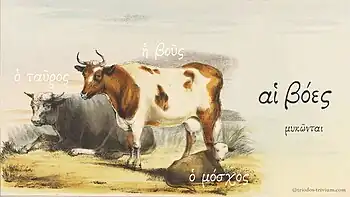 | Accusative | τὸν, τὴν βοῦν tòn, tḕn boûn |
