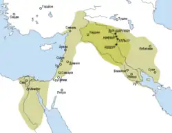 Borrowed from Latin Assyria, from Ancient Greek Ἀσσυρία (Assuría), from Akkadian 𒀾𒋗𒊏𒅀 (Aššūrāyu), from 𒀸𒋩𒆠 (Aššūr, “Assur”), its original capital.