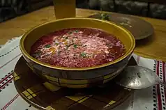 - hogweed soup, beet soup, borscht (a soup made of beets and cabbage)