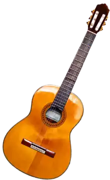 From Spanish guitarra, from Ancient Greek κιθάρα (kithára).