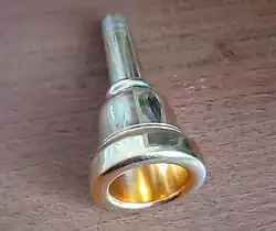 - mouthpiece (the part of a wind instrument that is held in or against the mouth)