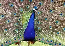 павли́н • (pavlín) m anim (genitive павли́на, nominative plural павли́ны, genitive plural павли́нов, feminine па́ва, relational adjective павли́ний, diminutive павли́нчик)