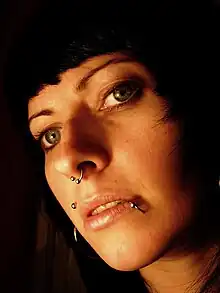 Же́нщина с не́сколькими вариа́нтами пи́рсинга лица́