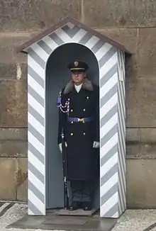 - (with на) post (fulfillment of an armed guard's professional duties)