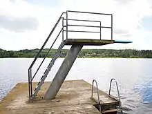 трампли́н • (tramplín) m inan (genitive трампли́на, nominative plural трампли́ны, genitive plural трампли́нов)