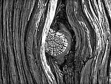 - (botany) knurl, gnarl; a knot in wood